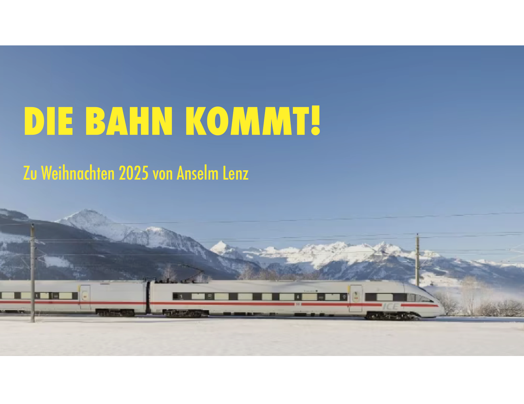Eine der nächsten Gelegenheiten dafür ist bei der zweiten Ausgabe der Ersten Alternativen Medienmesse. Am Vortag, am Samstag, 28. März 2026, werden wir ab 15:30 Uhr auf dem Berliner Rosa-Luxemburg-Platz den sechsten Geburtstag der neuen deutschen Friedens- und Demokratiebewegung mit dem »Marsch durch Berlin« begehen: »Wir sind die Rote Linie!« Womit ich für heute bei der Zierleiste auf dem ICE ankomme. Der Zug biegt gleich ins Geleis ein. Das alternative Messepaket für 29. März 2026 kann HIER geordert werden.