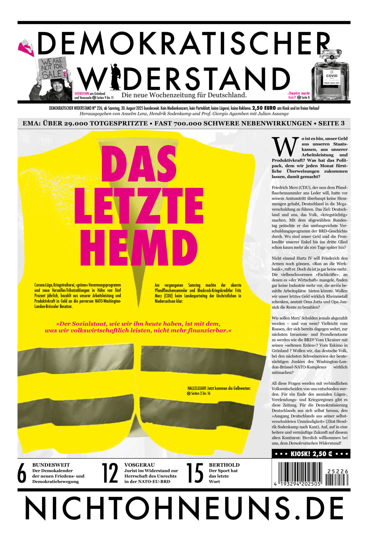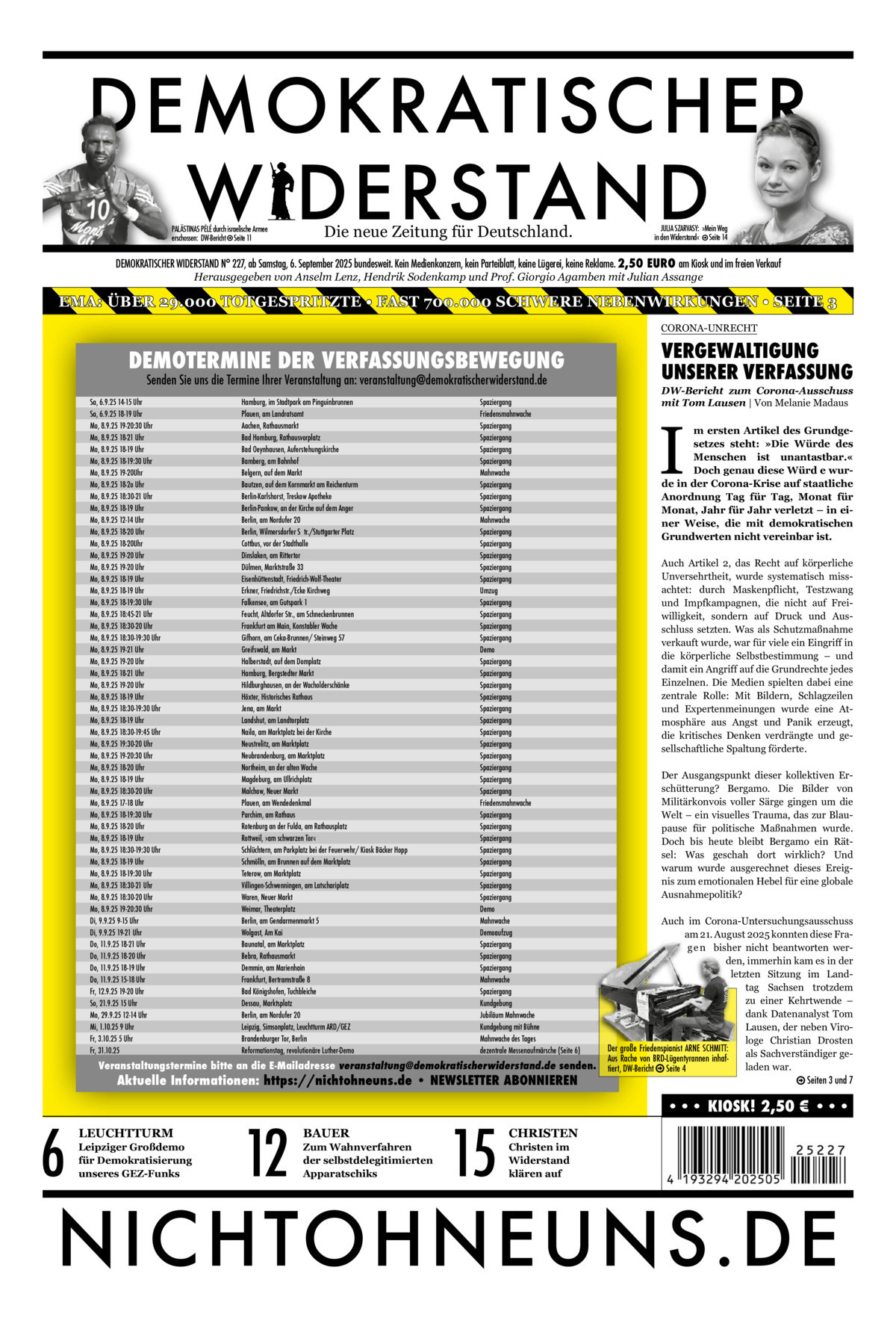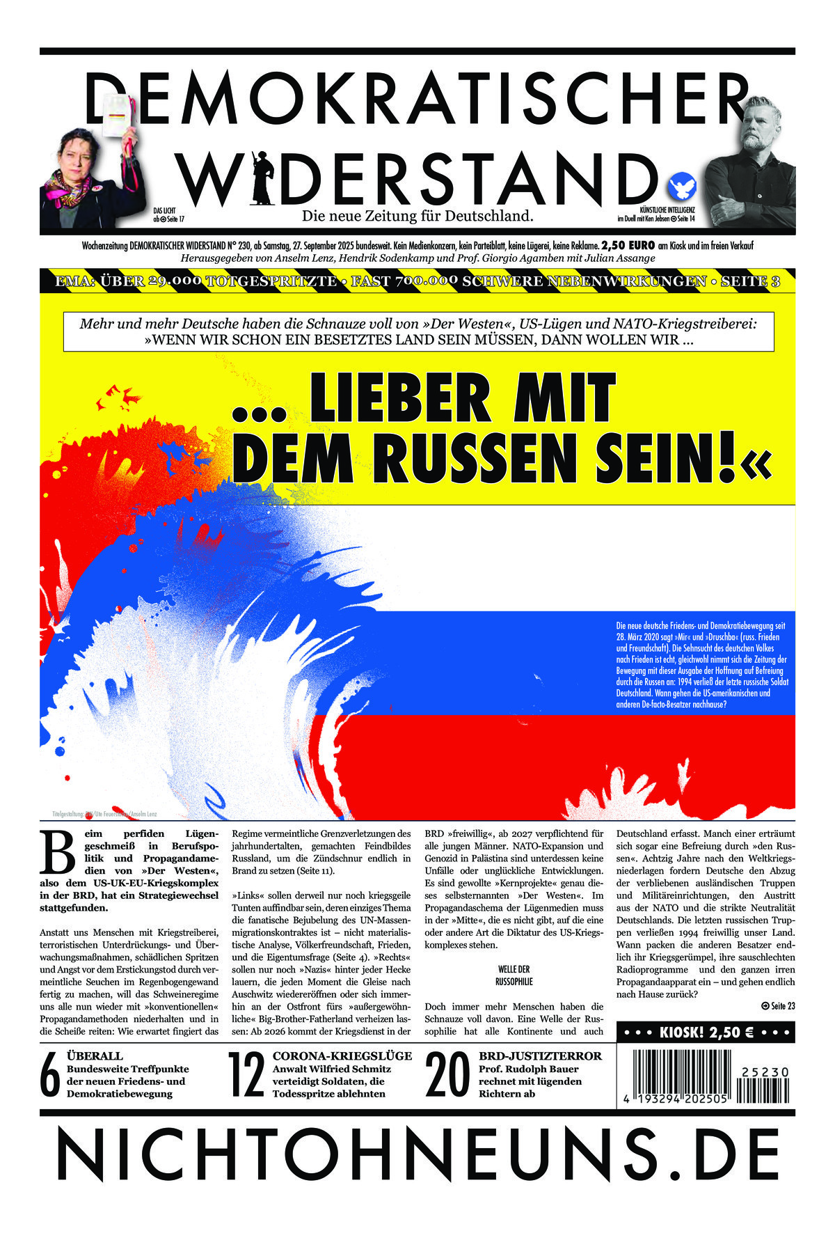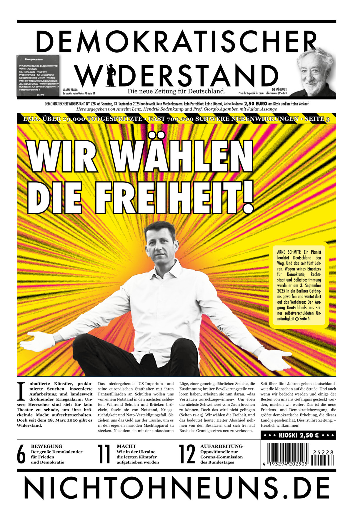 +++ Der Gedenktag für die Opfer des Corona-Terrorregimes, Marsch durch Berlin mit Kranzniederlegung vor dem Bundestag + Erste Alternative Medienmesse: Beginn am Samstag 28. März 2020, 15:30 Uhr Rosa-Luxemburg-Platz (Volksbühne)! +++ Dein EINBERUFUNGSBESCHEID ist da! Hier gehts zur neuen deutschen Friedens- und Demokratiebewegung (NichtOhneUns.de)! +++ Zeitung / hebdomadaire / weekly newspaper / Presse – Wir feiern über 35 Millionen echt gedruckte und verbreitete Exemplare der Wochenzeitung Demokratischer Widerstand (DW) seit 28. März 2020 +++ Seit 15. März 2020: Zum Rundbrief der Gründer der Demokratiebewegung abonnieren! (Klick hier!) +++
